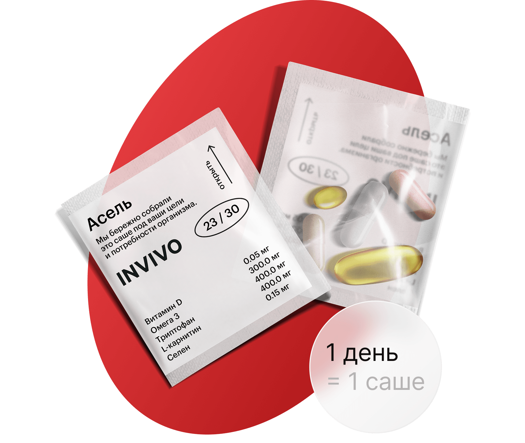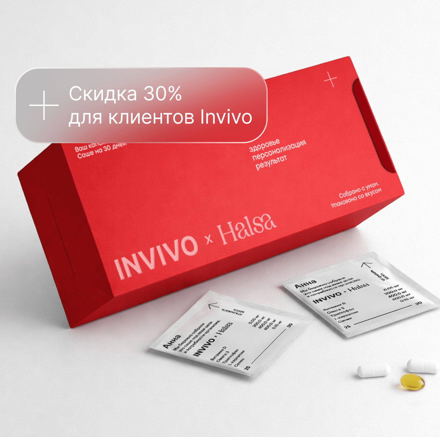 Персонализация в каждой детали: на саше указано ваше имя, состав курса и дневной набор витаминов